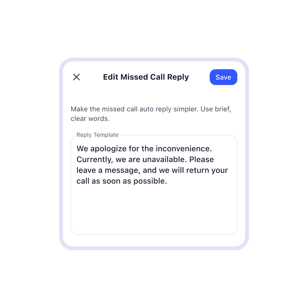 Automatically reply to missed calls and incoming texts.