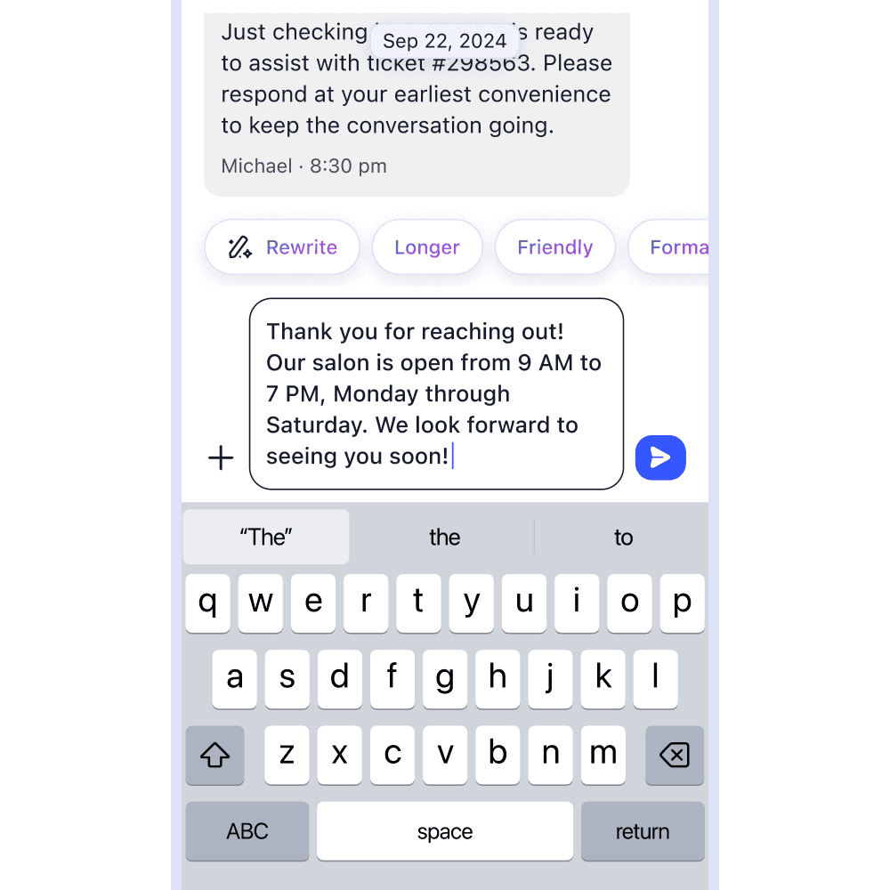 "Respond to 50% more inquiries using AI-suggested replies and Quick Texts."