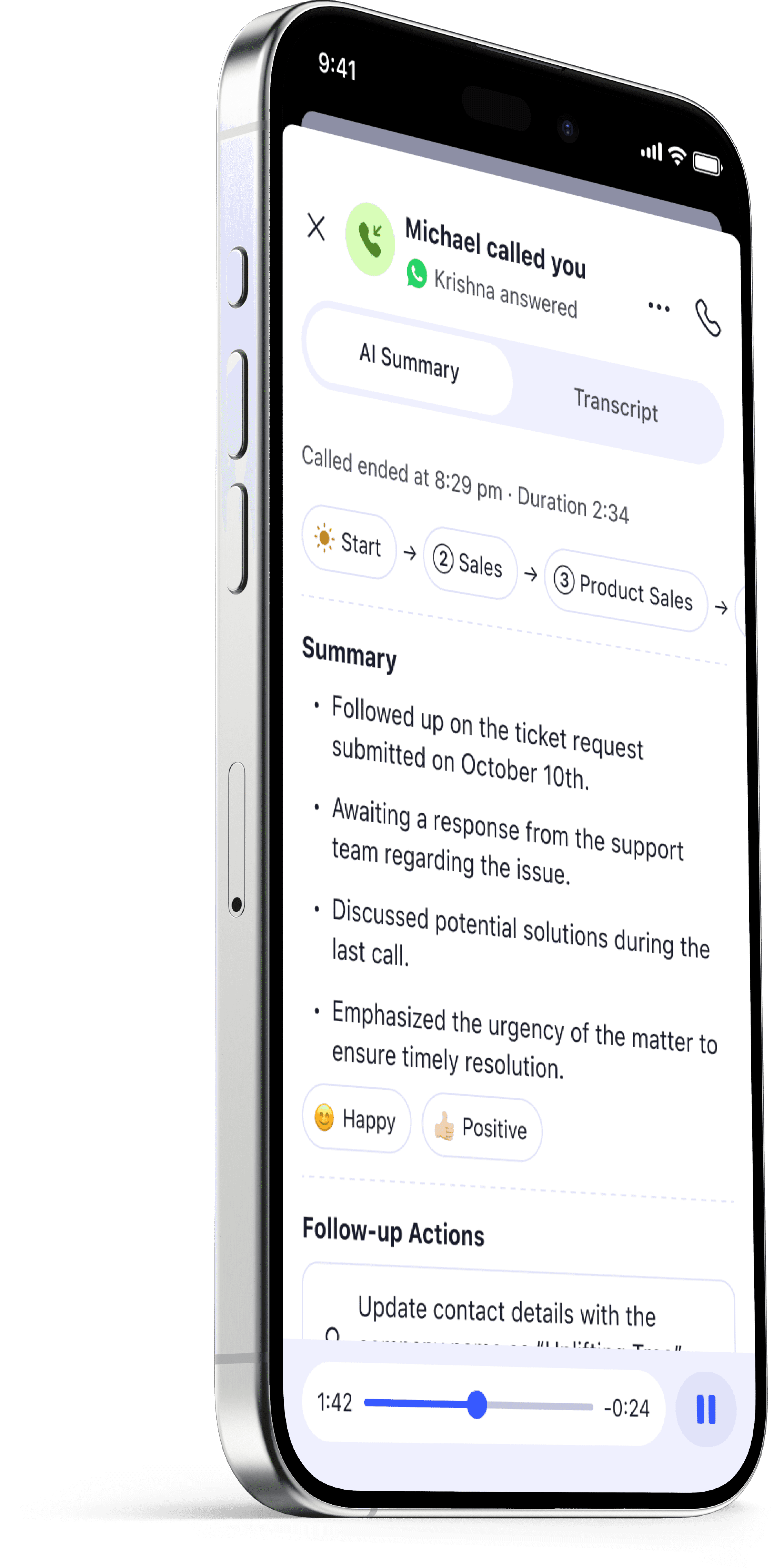 “I don’t have to scramble for a pen and paper during calls anymore. The AI summaries capture the key highlights and to-dos automatically, so I can focus on the person I’m talking to.”