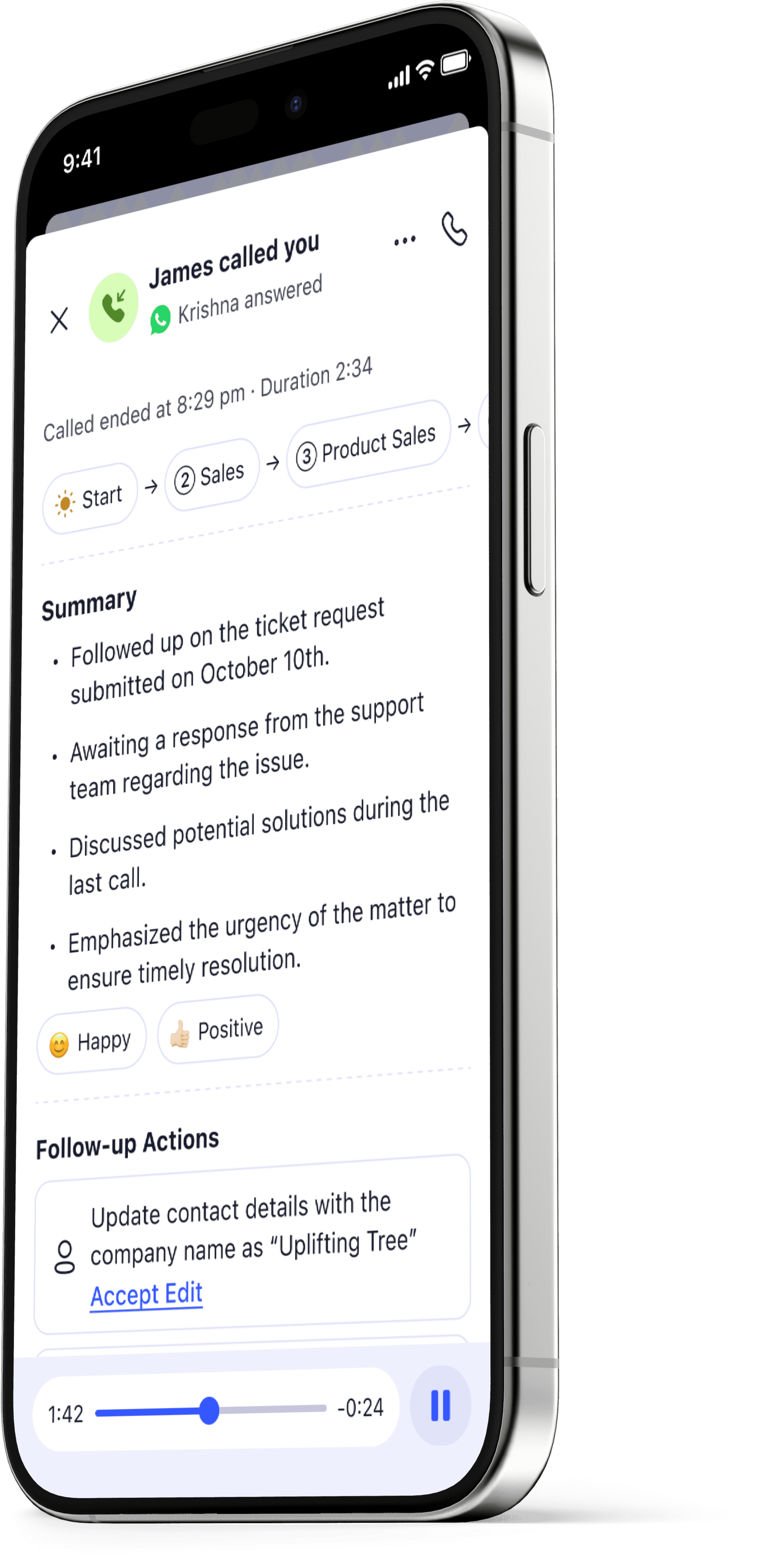 Access call recordings and AI call summaries in context.